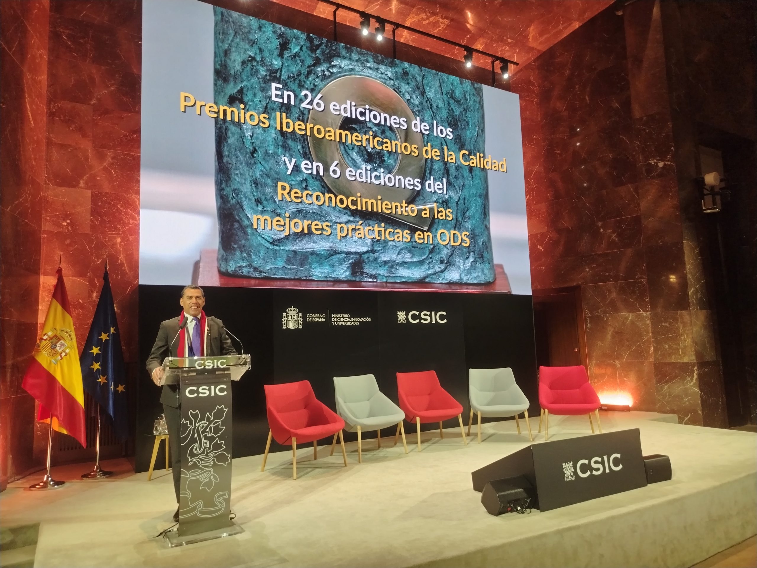 En el marco de la XXVI edición del Premio Iberoamericano de la Calidad y la VI edición de los Reconocimientos a las Mejores Prácticas en Materia de ODS, celebrados en Madrid, España, el Prof. MSc. Ángel Ibáñez, docente de la FADA/UNA, recibió un reconocimiento especial por su destacada tarea como coordinador en evaluaciones de calidad a nivel regional.